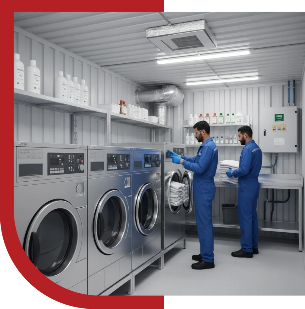 Saudi Elan’s Container Laundry Units are expertly designed to offer fully functional, mobile laundry solutions that can be deployed in diverse locations. These units provide scalable capacity and efficiency for on-site laundry operations, ideal for construction sites, remote facilities, and emergency response situations. Built to stringent quality standards, they ensure reliable performance while addressing the challenge of laundry demands where permanent infrastructure is unavailable.